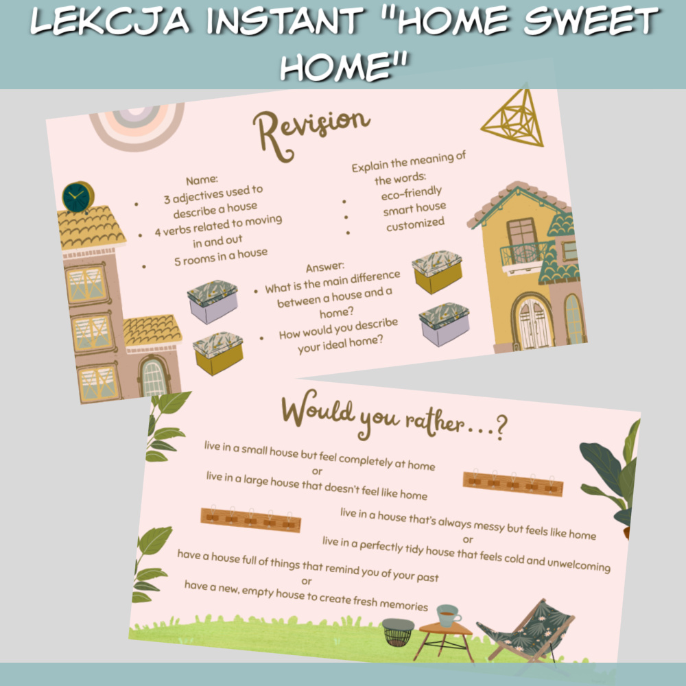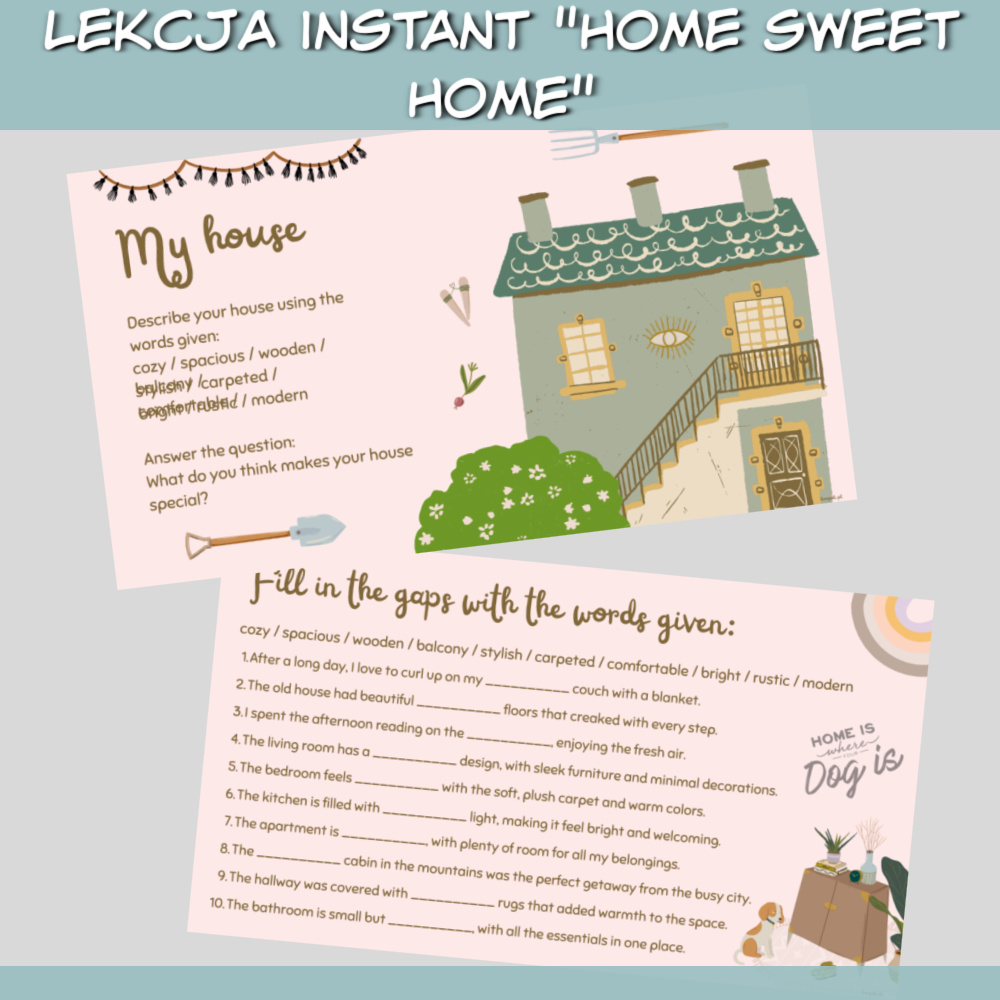 Lekcja Instant Home Sweet Home to praktyczna lekcja o codziennym temacie, która angażuje i rozwija język w sposób naturalny.