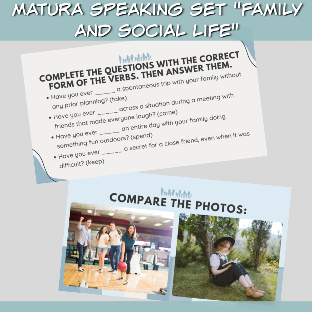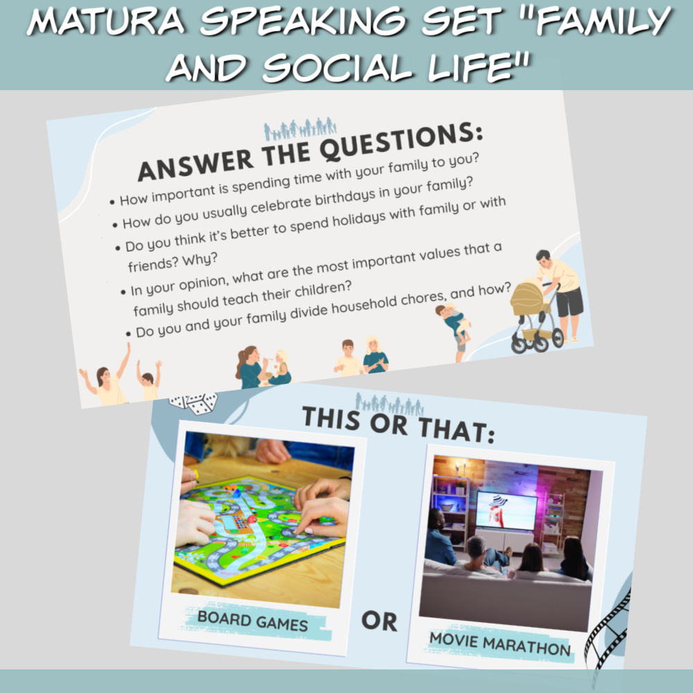 Matura speaking set Family and social life online
