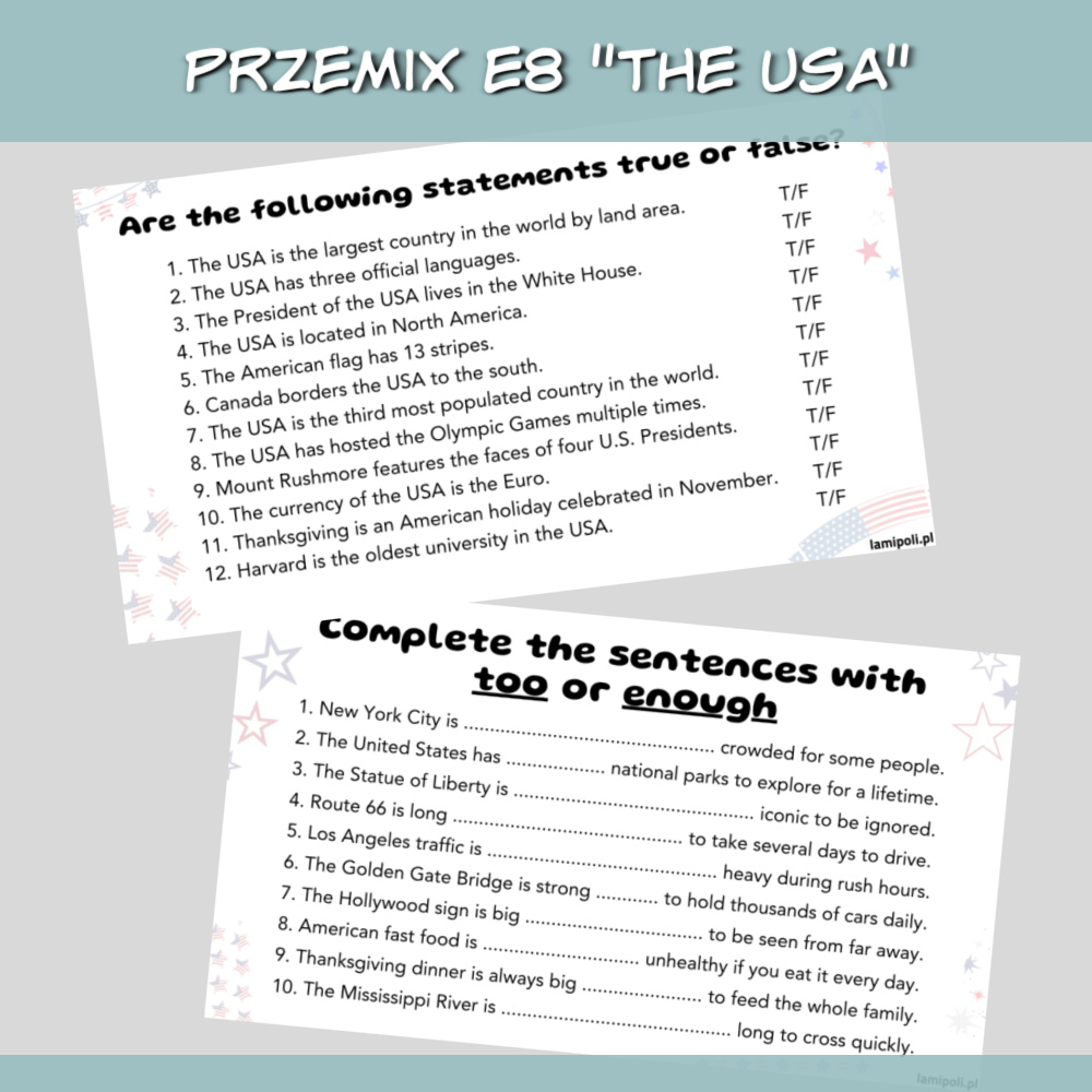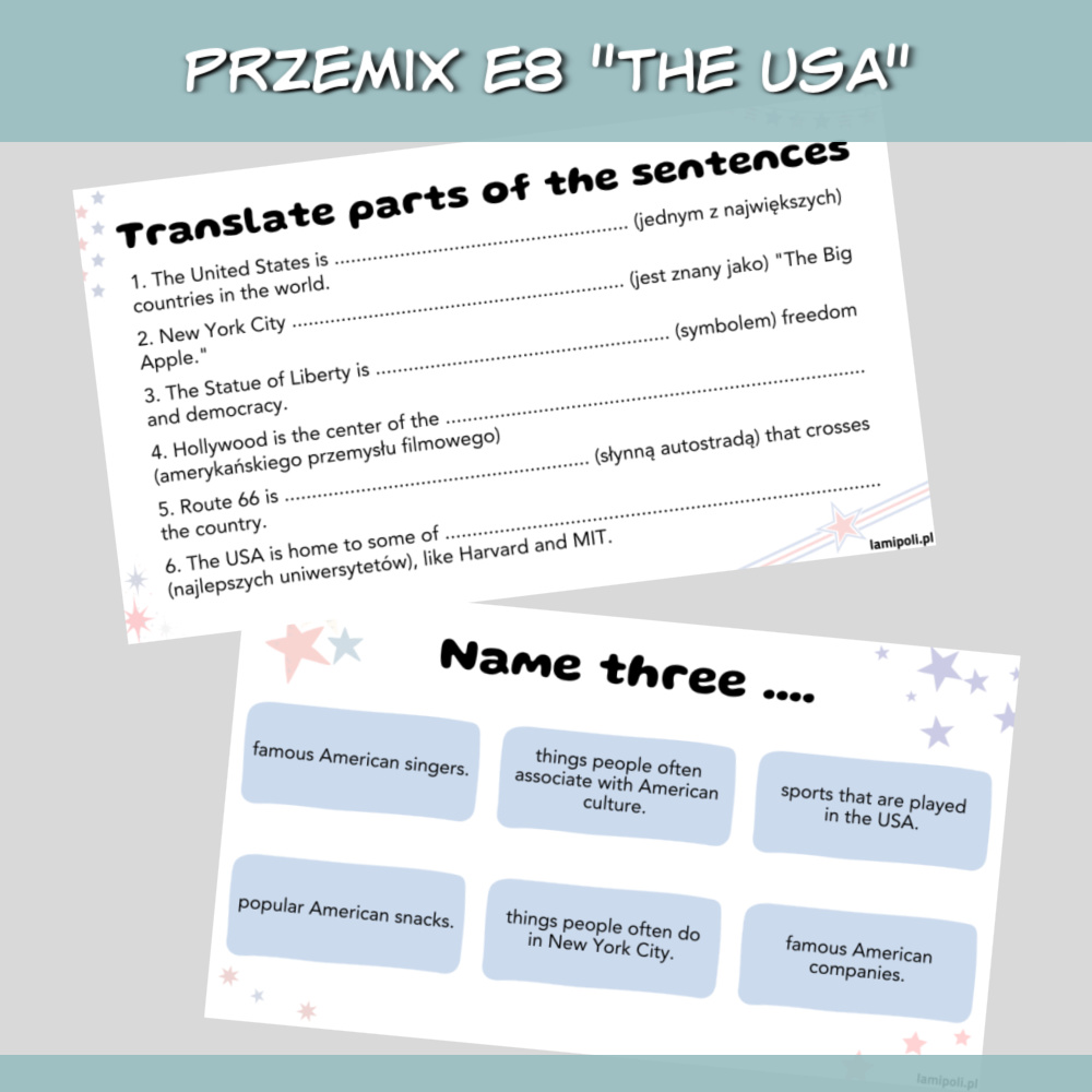 Zadania znajdujące się w prezentacji PrzeMIX E8 the USA: