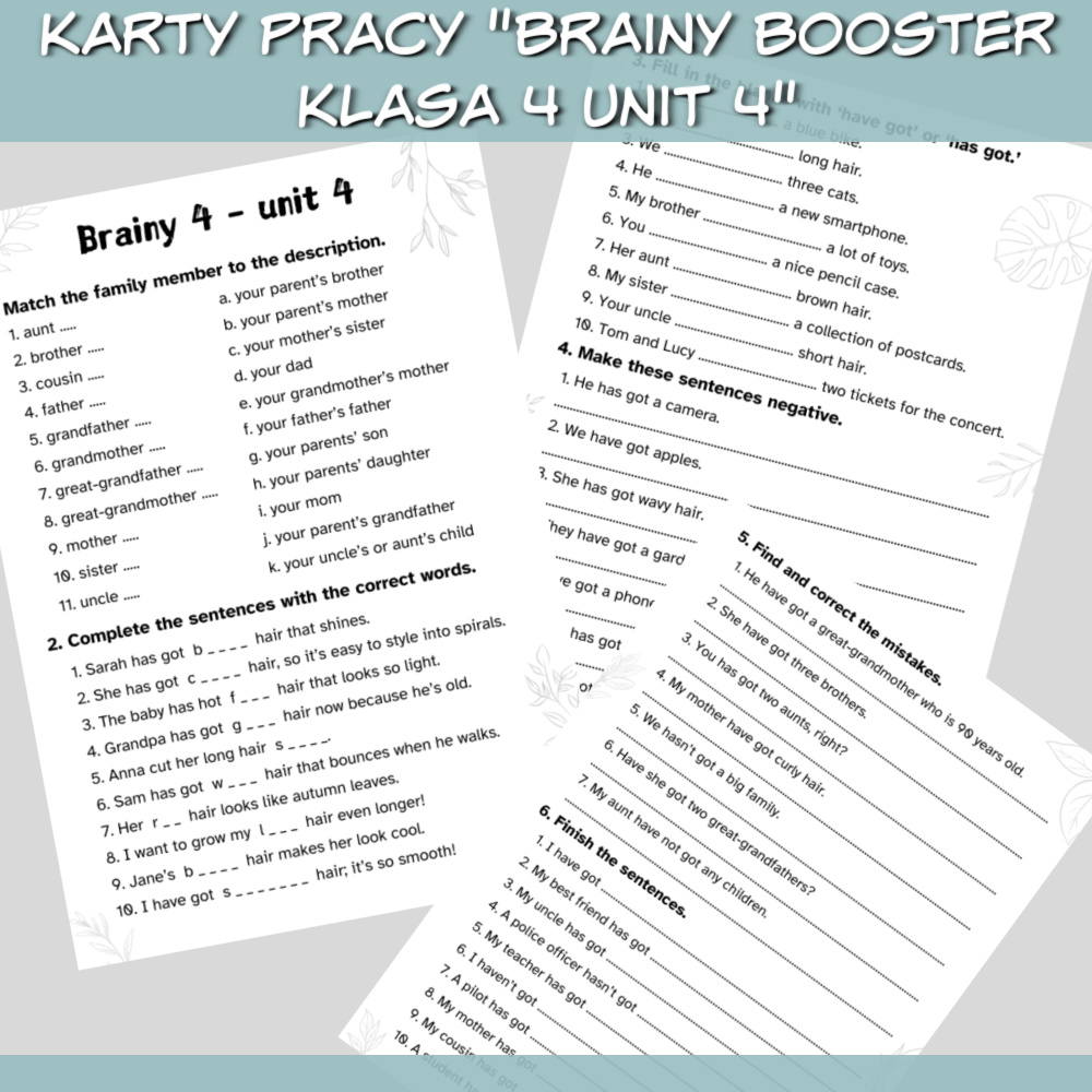 Zestaw Brainy Booster klasa 4 Unit 4 do druku, online