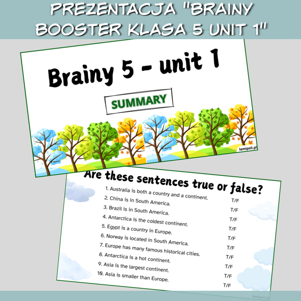 Zestaw Brainy Booster klasa 5 Unit 1 do druku, online