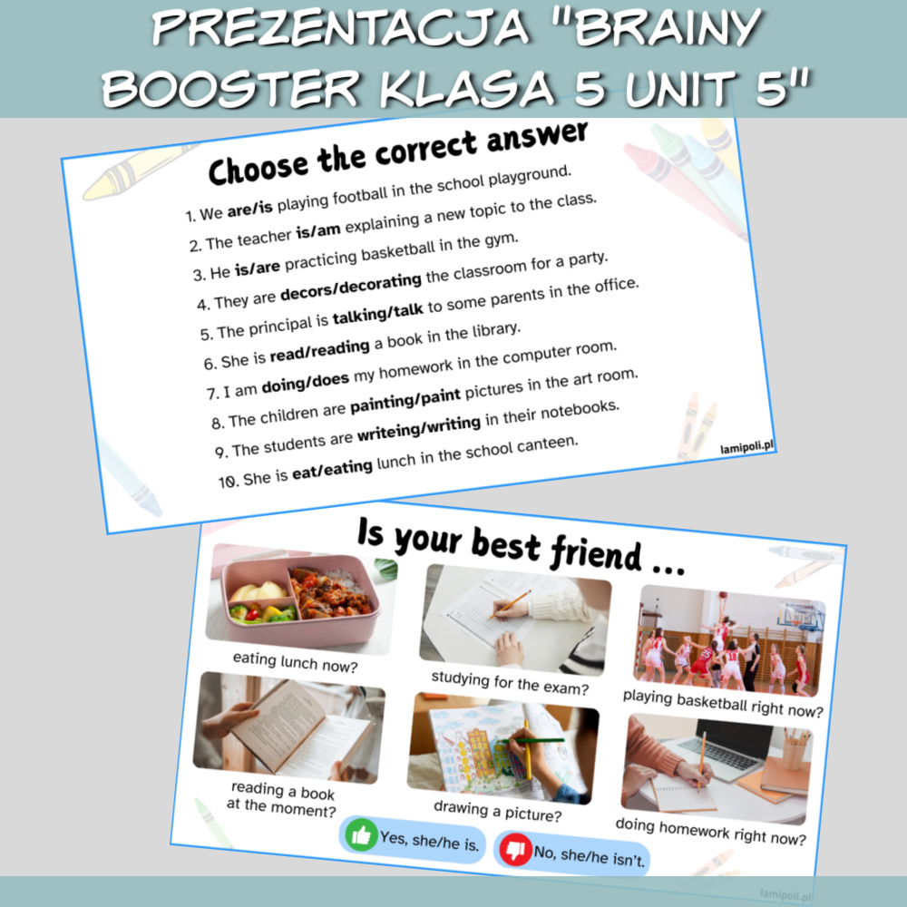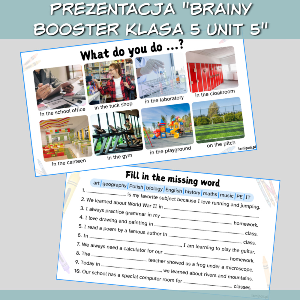 Nie trać czasu na tworzenie dodatkowych ćwiczeń – z Zestawem Brainy Booster klasa 5 Unit 5 masz wszystko, czego potrzebujesz, by przeprowadzić profesjonalne, angażujące lekcje.