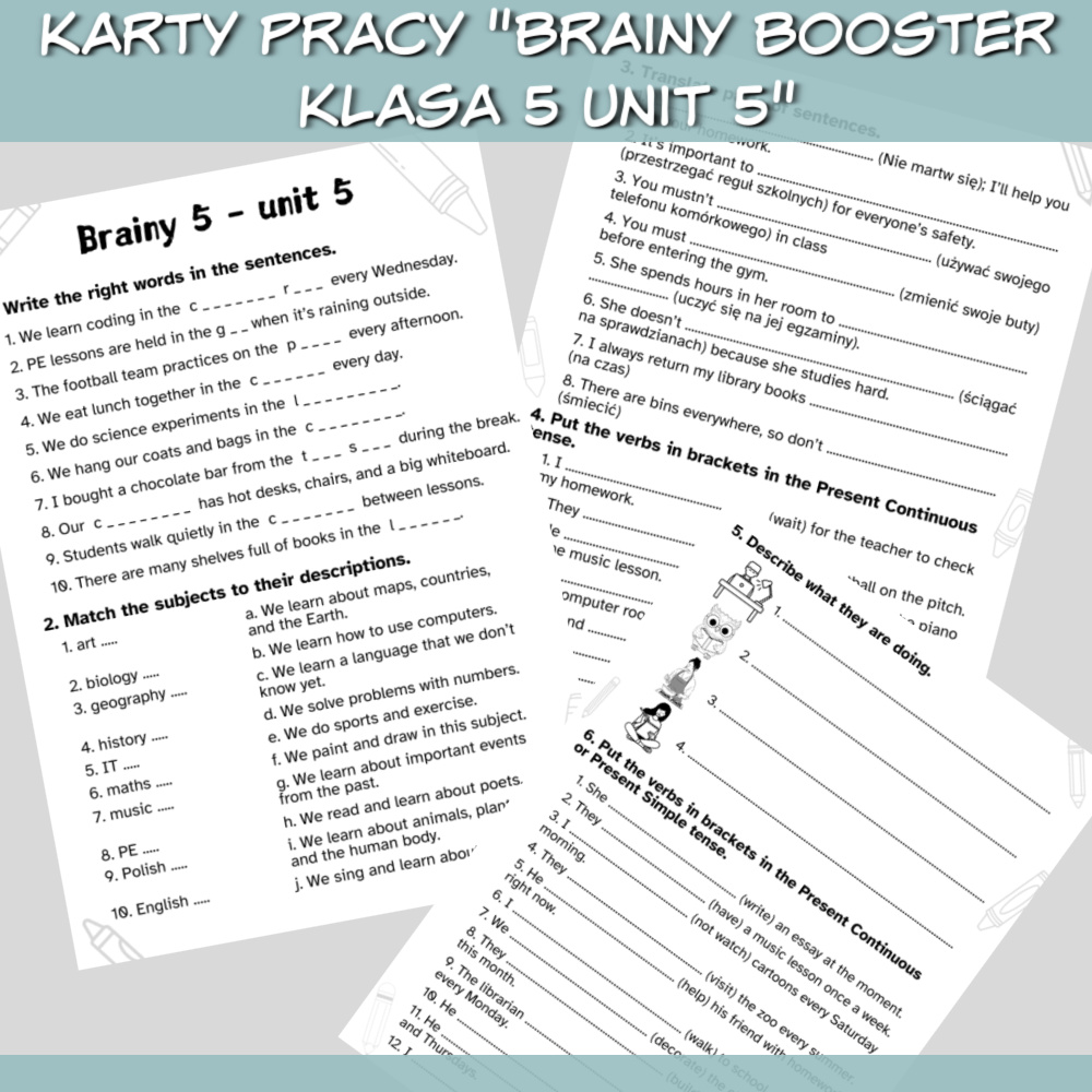 Zestaw Brainy Booster klasa 5 Unit 5 do druku, online