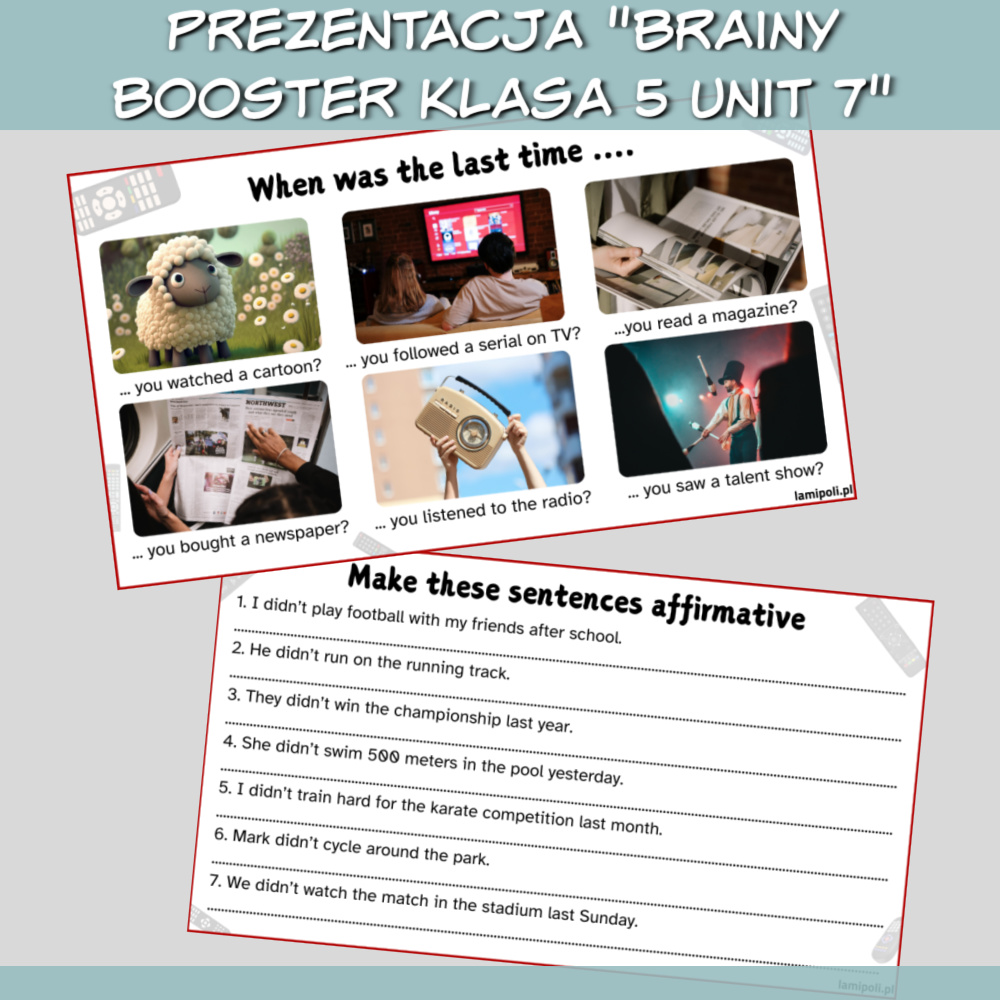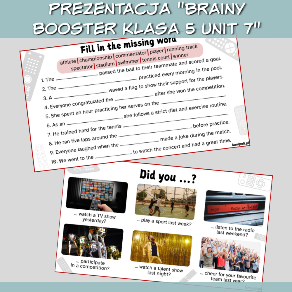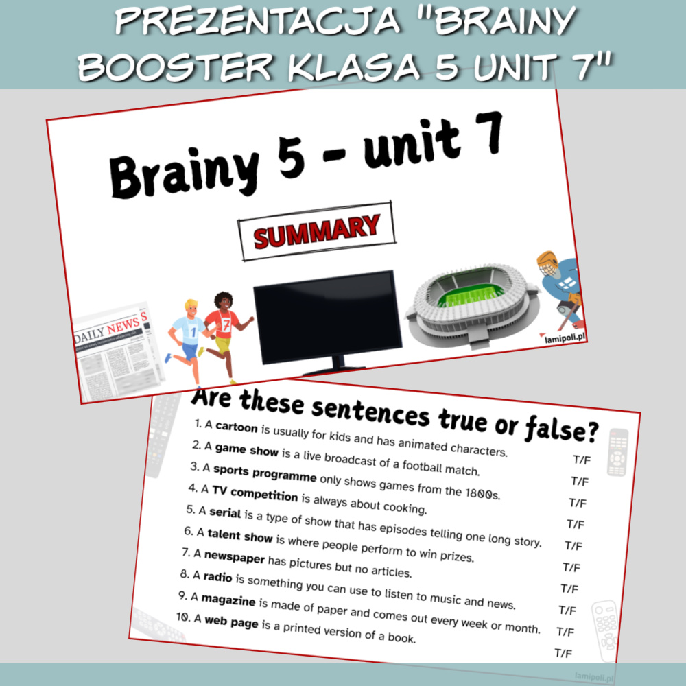 Nie trać czasu na tworzenie dodatkowych ćwiczeń – z Zestawem Brainy Booster klasa 5 Unit 7 masz wszystko, czego potrzebujesz, by przeprowadzić profesjonalne, angażujące lekcje.