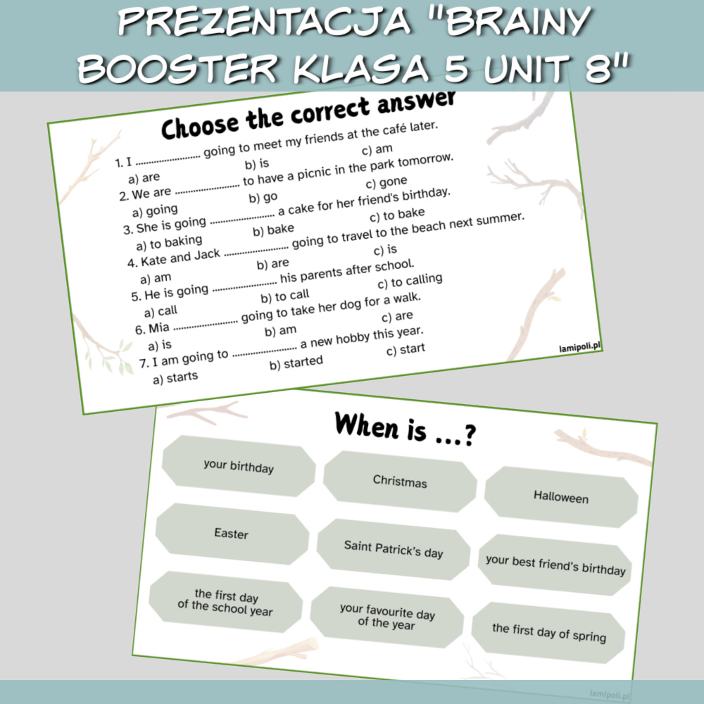 Nie trać czasu na tworzenie dodatkowych ćwiczeń – z Zestawem Brainy Booster klasa 5 Unit 8 masz wszystko, czego potrzebujesz, by przeprowadzić profesjonalne, angażujące lekcje.