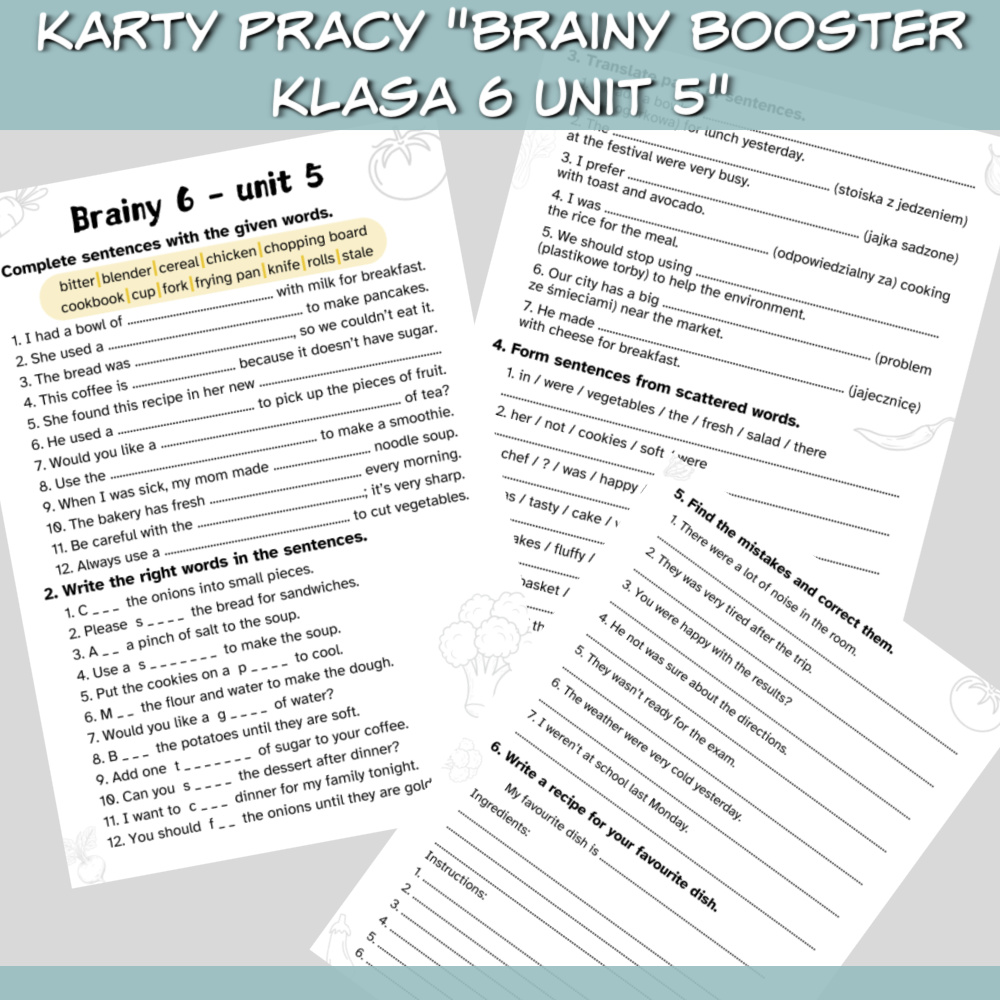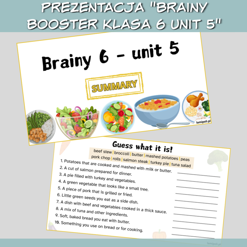 Nie trać czasu na tworzenie dodatkowych ćwiczeń – z Zestawem Brainy Booster klasa 6 Unit 5 masz wszystko, czego potrzebujesz, by przeprowadzić profesjonalne, angażujące lekcje.