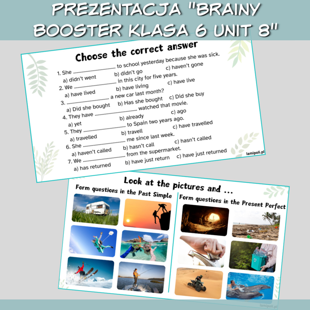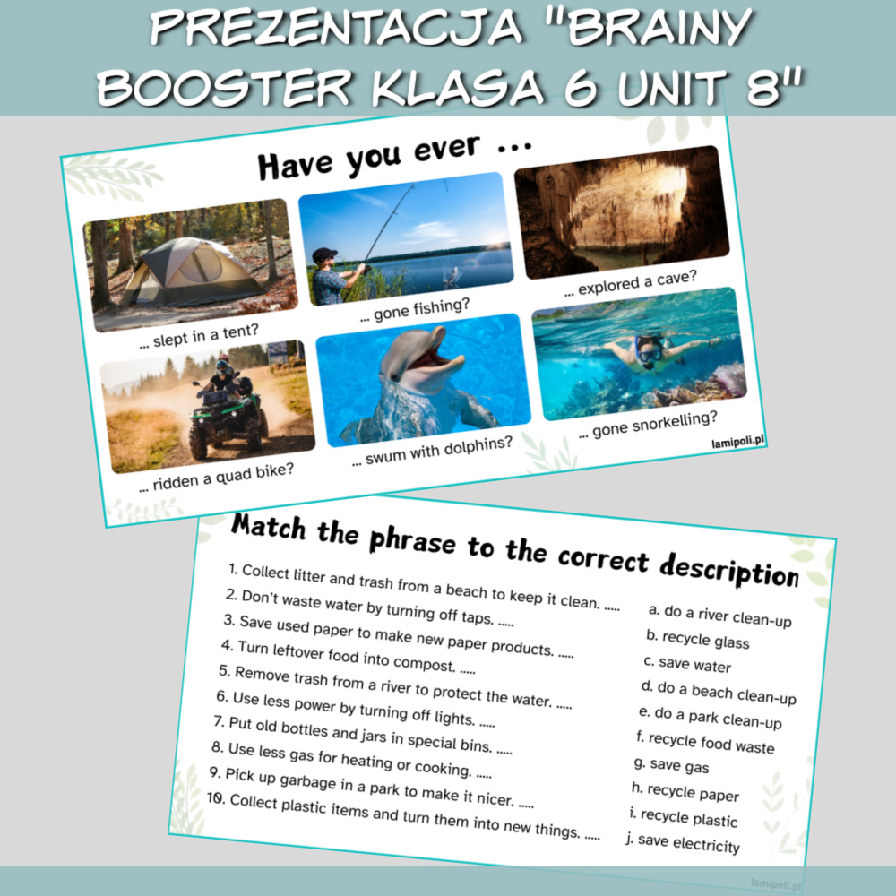 Nie trać czasu na tworzenie dodatkowych ćwiczeń – z Zestawem Brainy Booster klasa 6 Unit 8 masz wszystko, czego potrzebujesz, by przeprowadzić profesjonalne, angażujące lekcje.