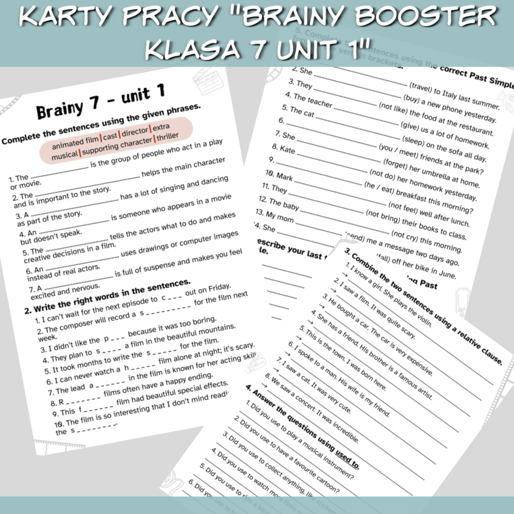 W Zestawie Brainy Booster klasa 7 Unit 1 otrzymujesz: