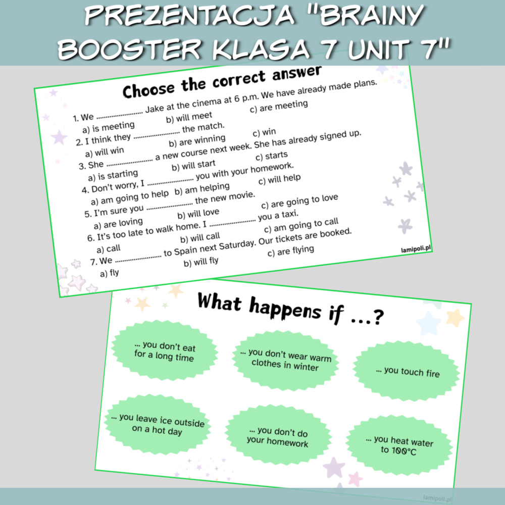 W Zestawie Brainy Booster klasa 7 Unit 7 otrzymujesz:
