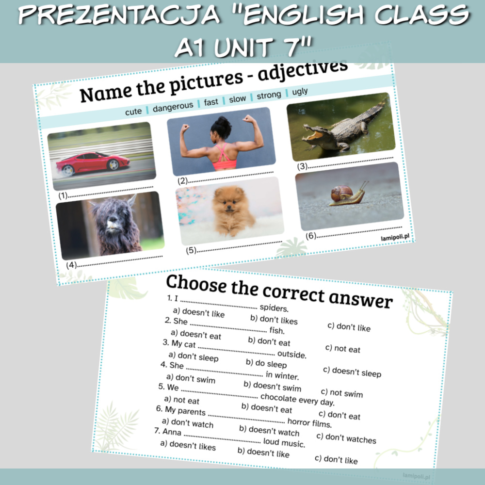 Nie trać czasu na tworzenie dodatkowych ćwiczeń – z Zestawem English Class A1 Unit 7 masz wszystko, czego potrzebujesz, by przeprowadzić profesjonalne, angażujące lekcje.