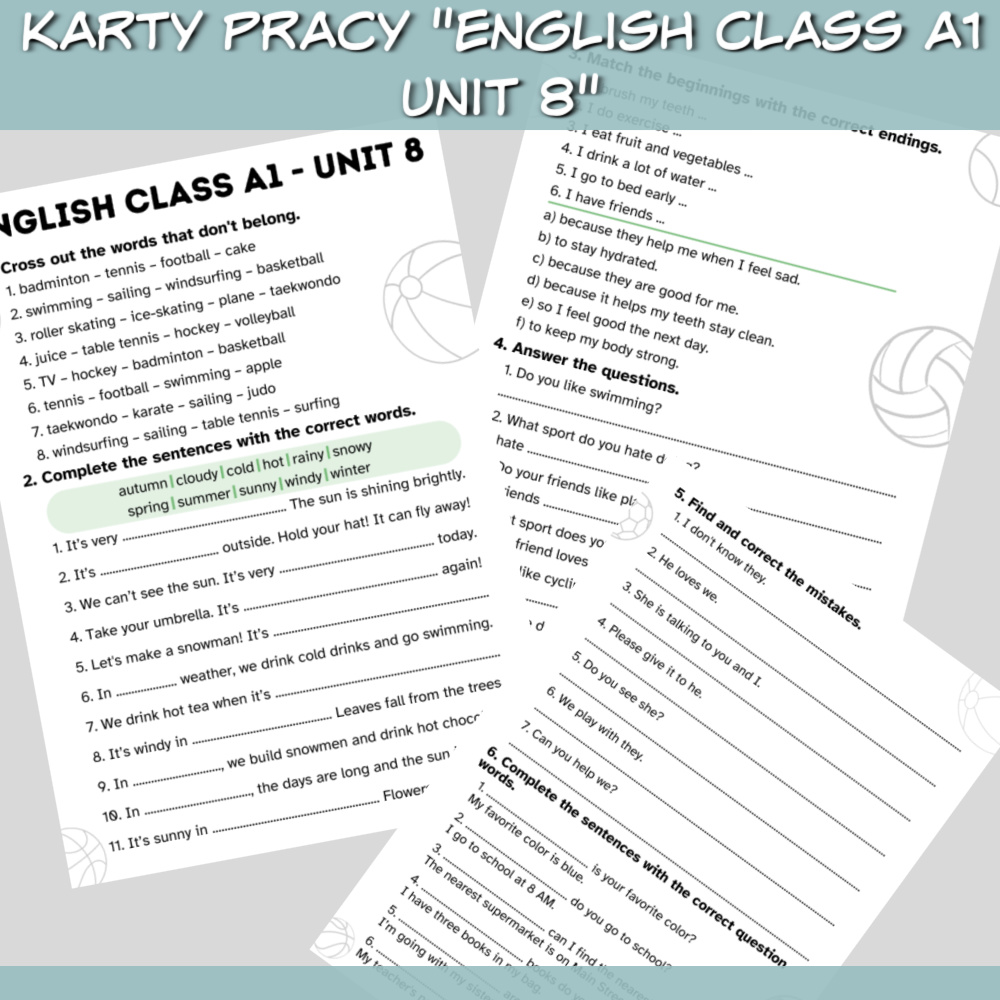 Zestaw English Class A1 Unit 8 do druku, online