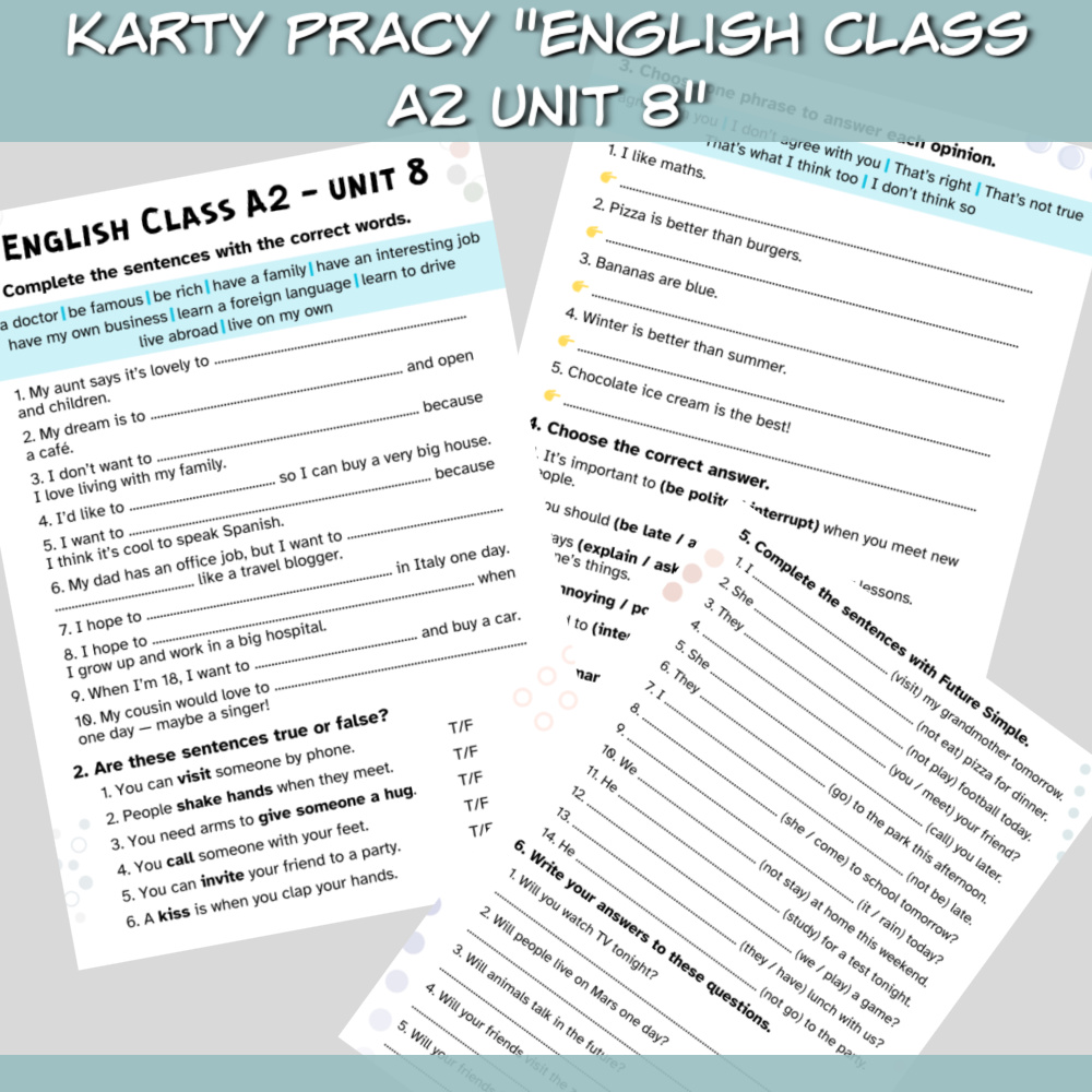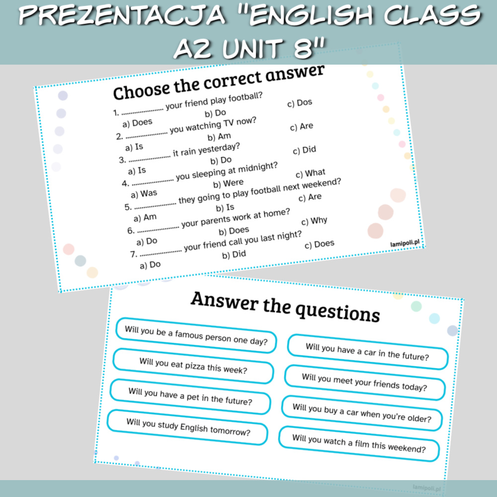 Nie trać czasu na tworzenie dodatkowych ćwiczeń – z Zestawem English Class A2 Unit 8 masz wszystko, czego potrzebujesz, by przeprowadzić profesjonalne, angażujące lekcje.