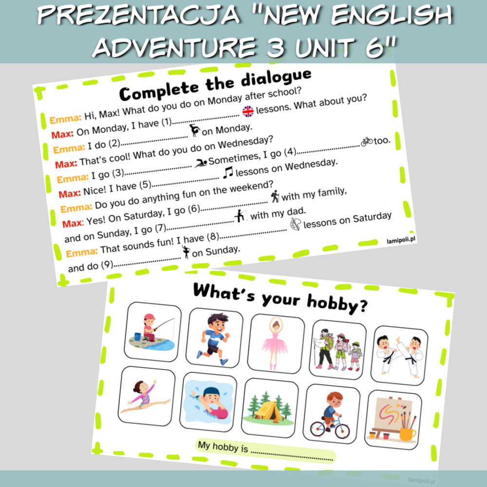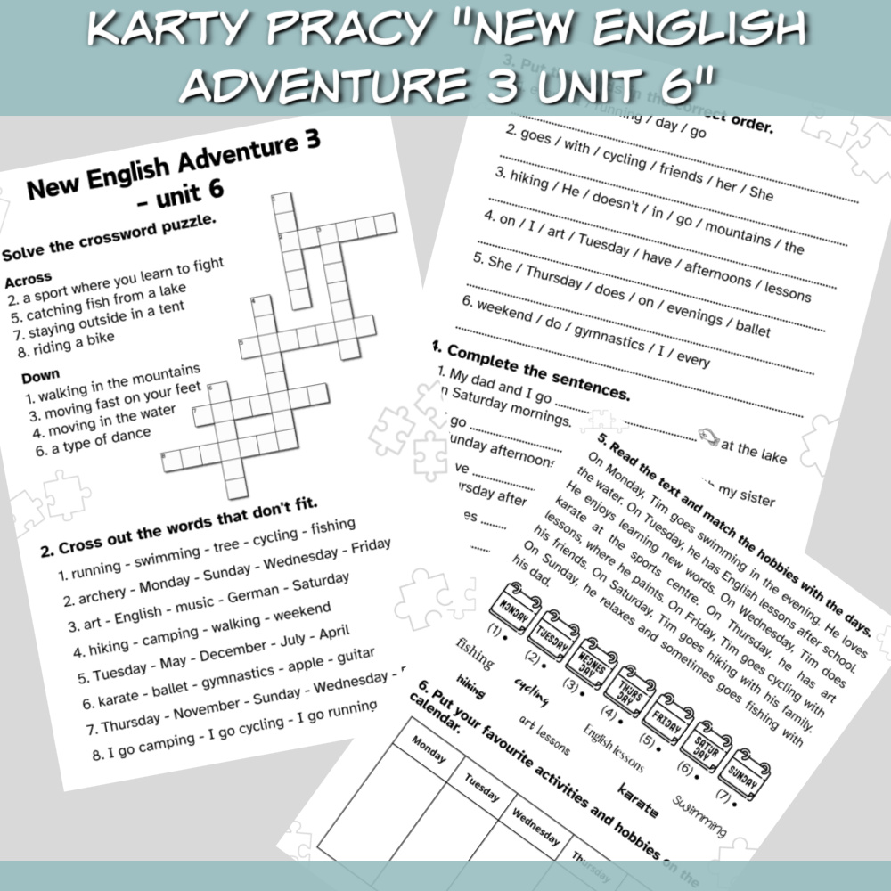 Zestaw New English Adventure Klasa 3 Unit 6 to materiał, który pomoże Twoim uczniom lub dziecku powtórzyć zagadnienia z podręcznika New English Adventure klasa 3 Unit 6. Zestaw zawiera bogaty wybór zadań, które wspierają naukę słownictwa, gramatyki oraz umiejętności mówienia w języku angielskim. Idealny dla nauczycieli, korepetytorów i rodziców, którzy chcą dodatkowo utrwalić materiał w angażujący i różnorodny sposób.