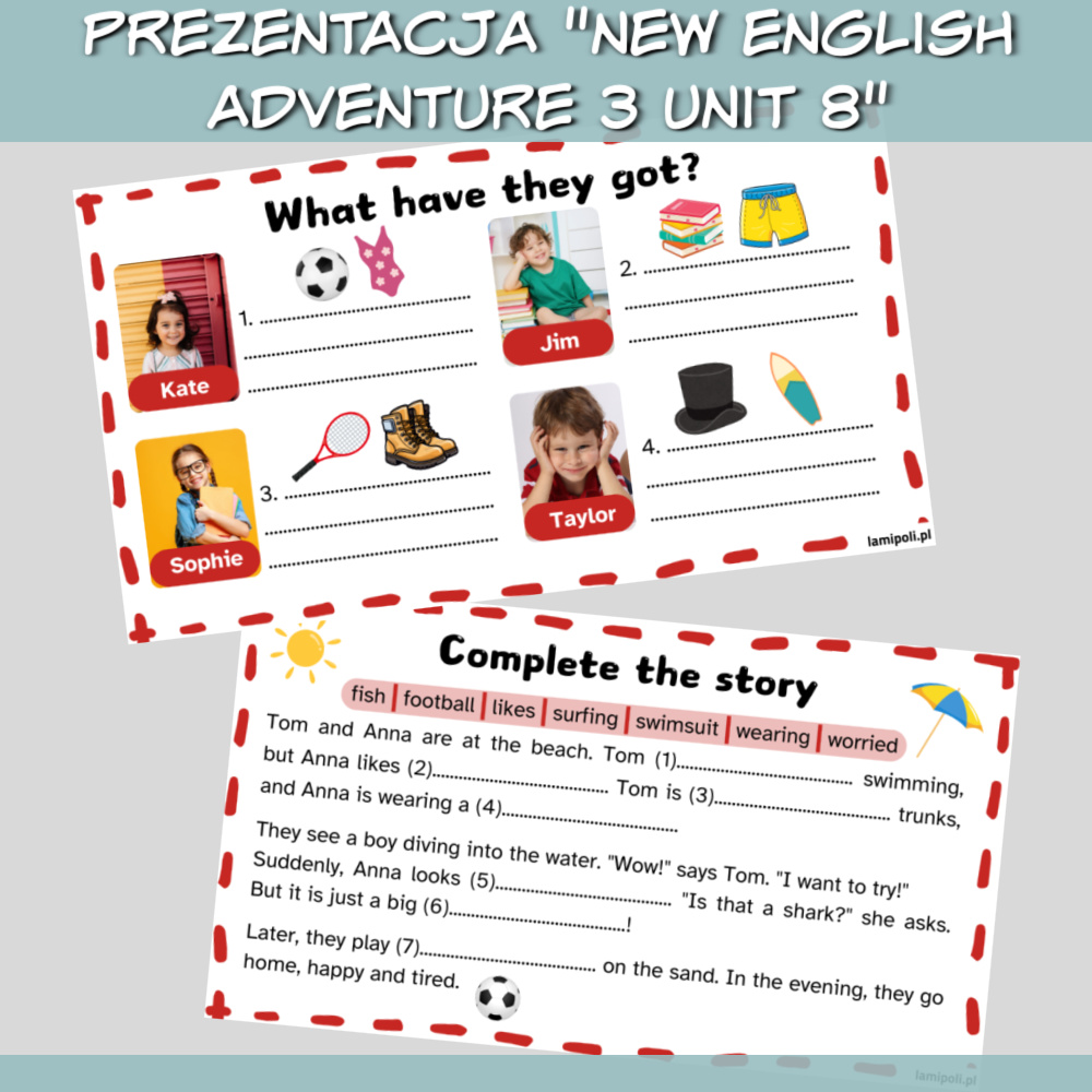 Zestaw New English Adventure Klasa 3 Unit 8 do druku, online