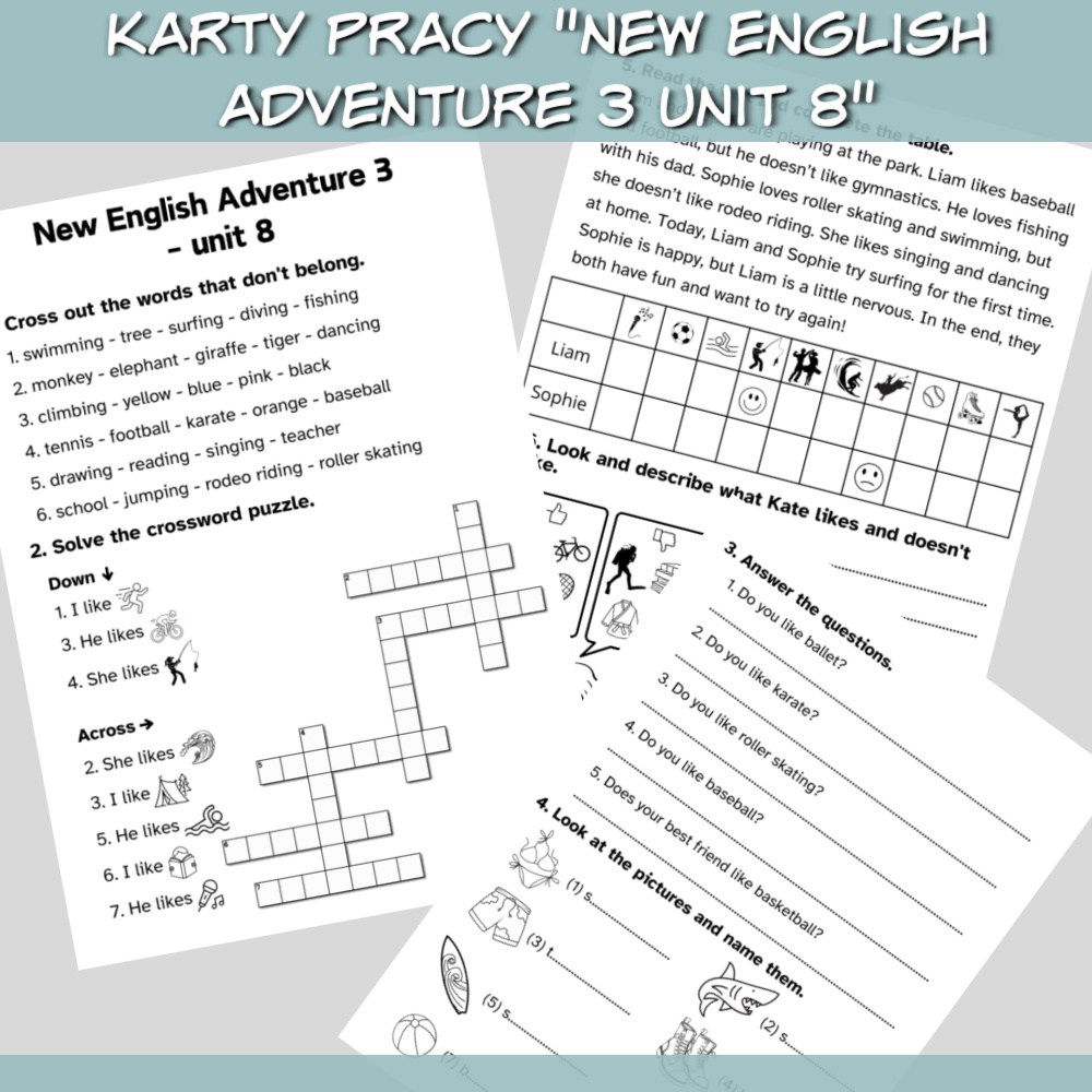 Zestaw New English Adventure Klasa 3 Unit 8 to materiał, który pomoże Twoim uczniom lub dziecku powtórzyć zagadnienia z podręcznika New English Adventure klasa 3 Unit 8. Zestaw zawiera bogaty wybór zadań, które wspierają naukę słownictwa, gramatyki oraz umiejętności mówienia w języku angielskim. Idealny dla nauczycieli, korepetytorów i rodziców, którzy chcą dodatkowo utrwalić materiał w angażujący i różnorodny sposób.